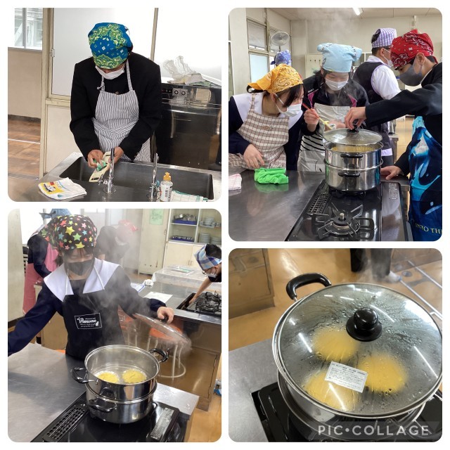 3年生 家庭科 公開日 2025/12/16 更新日 2025/12/16 南中 JUST NOW ! 今日は調理実習で、にんじん蒸しパンを作りました。班で協力したおかげで1時間の授業の中であっという間に完成しました。もちろん試食中は美味しい笑顔が広がりました。