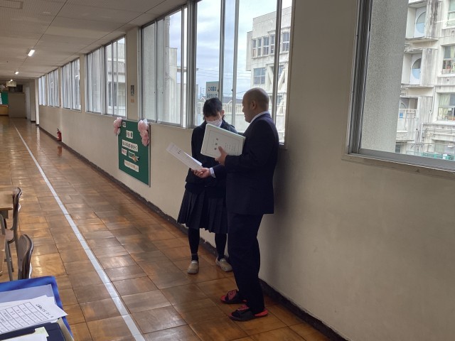 担任の先生と2学期の学習や、生活を振り返ります。