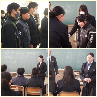 マナー講座 公開日 2026/01/13 更新日 2026/01/13 2年生 名古屋マリオットアソシアホテルの方々にお越しいただき、社会人としてのマナーを教えていただきました。あいさつの仕方、お客様への対応をロールプレイで行いました。