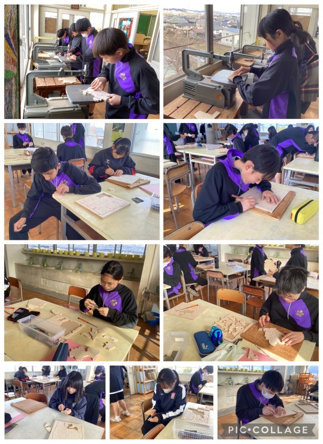 1年生の美術では、木工パズルを作っています。今日は、形に切り抜き、やすりで角を削っていました。完成まで、もう少し時間がかかりそうです。