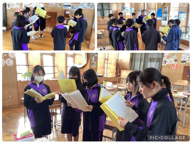 1年生の音楽では、送る会で1、2年生が合同で歌う「正解」を練習していました。CDをよく聴きながら、音取りに取り組んでいました。