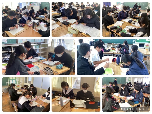 3年生は、入試に向けて最後の追い込みをしています。プリントやワークで復習をしながら、自分の苦手を少しでも克服できるよう頑張っています。