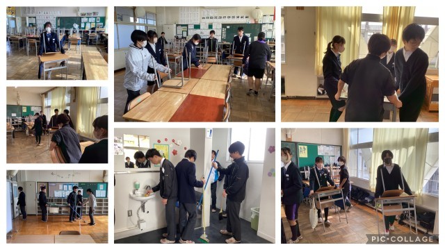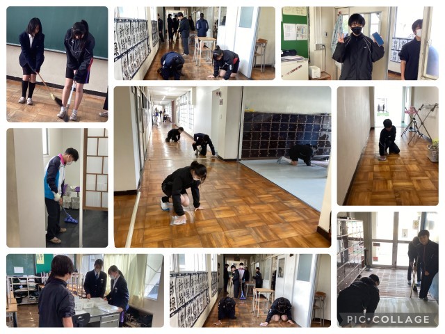 掃除の時間です。大切な学校、学びの場がきれいになるように、自分の役割を果たしています。