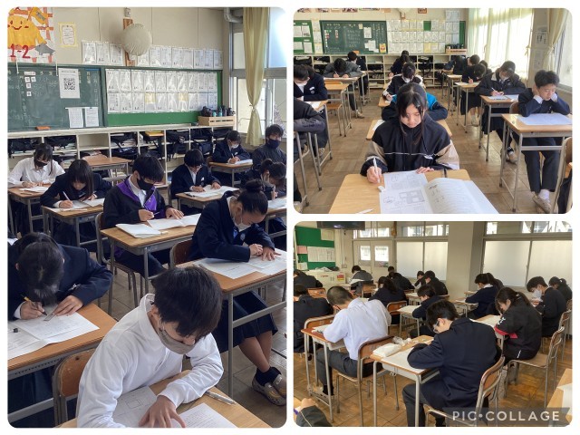 1・2年生 学年末テストテスト 公開日 2026/02/10 更新日 2026/02/10 南中 JUST NOW ! 学年末テストが始まりました。1年間で最後の定期考査です。これまでの学習に対する努力の成果が現れると思います。3日間、しっかりとがんばりましょう。