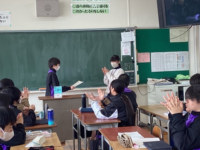 国語科の授業でビブリオバトルを行いました。各自お気に入りの一冊を持ち寄り、聞き手の目を見たり問いかけを入れたりと、工夫して紹介する姿が見られました。