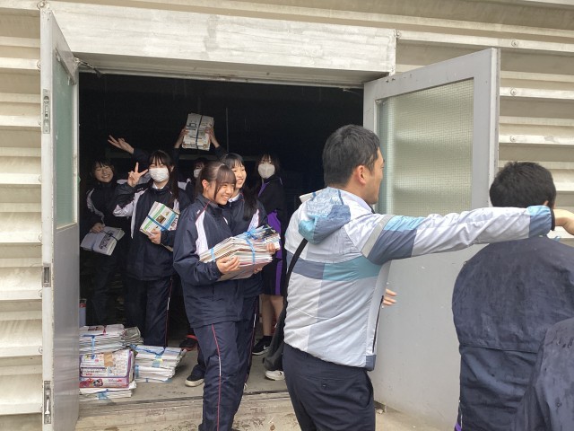 雨の中ではありましたが、有志の皆さんがたくさん集まってくれたおかげで、ダンボール等の積み込みを素早く終えることができました。