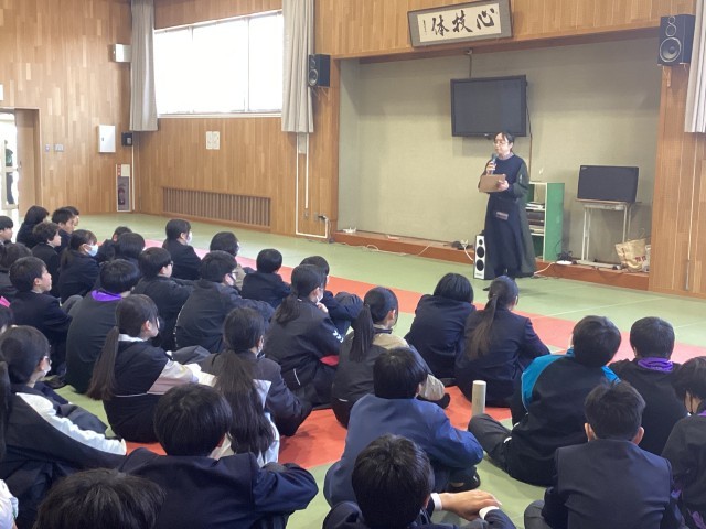 最後まで真剣に話を聞く姿勢がはじめての学年集会の姿と重なり、変わらず素敵なことと、より中学生らしくなったみんなの成長を感じました。