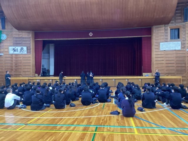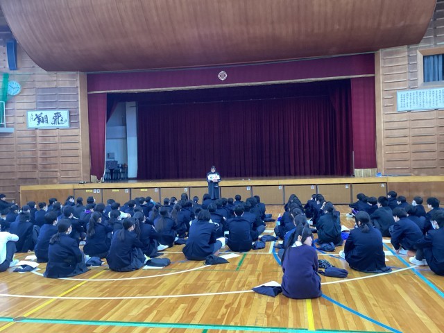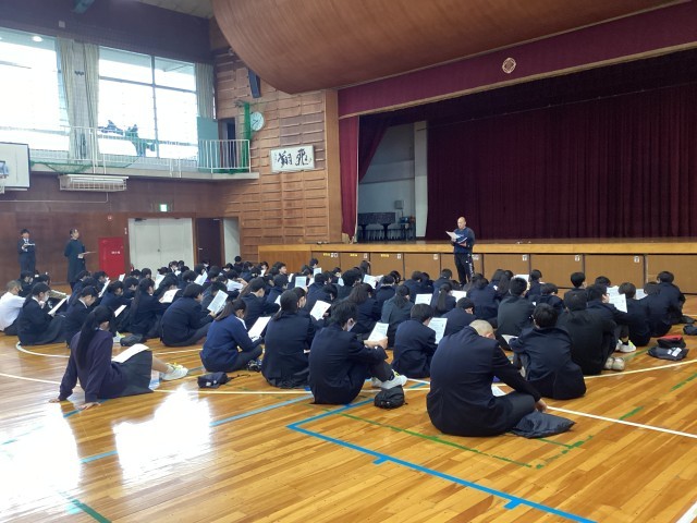 新学年となり、早速の学年集会です。学年の先生の自己紹介や、今後の生活や学習についてなど話を聞きました。