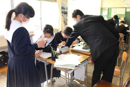 2年生 数学の授業風景です。 関数の考え方、解き方に取り組みます。