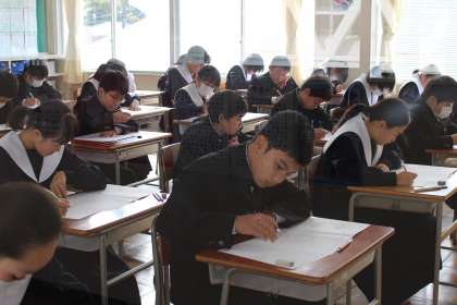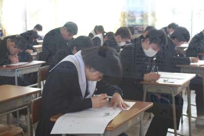 1・2年生学年末テスト二日目、真剣に取り組んでいます。