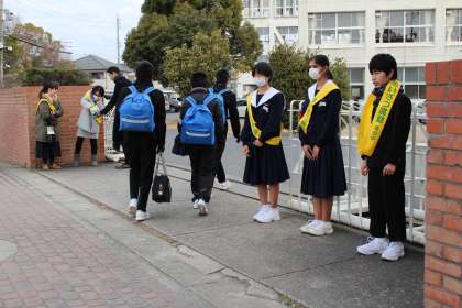 朝のあいさつ運動最終日です。 連携委員の皆さん、寒い中ご協力ありがとうございました。