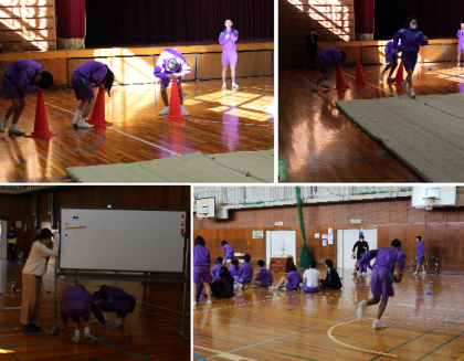 今日の種目は、体育館での障害物リレーです。