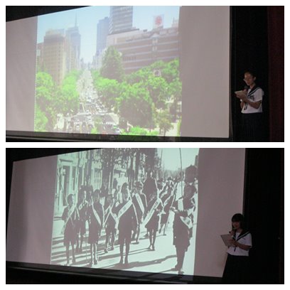 また、広島平和派遣に参加する4名の生徒から、広島について、平和についての話がありました。4名の生徒は、市の代表として広島で開催される平和集会に参加し、夏休み明けの集会で、その日聞いたことや感想等を発表してくれる予定です。