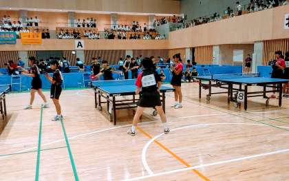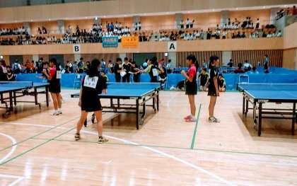 犬山市民体育館で行われている卓球団体戦の様子です。 女子が扶桑中学校と熱戦を展開しています。