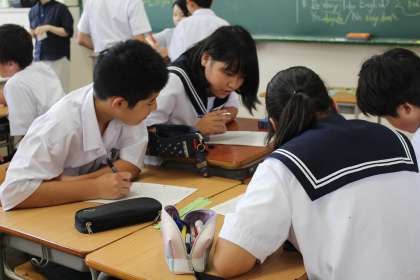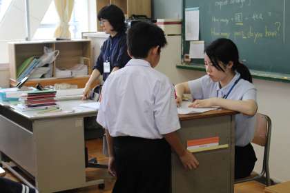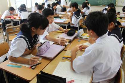 1年生 英語の授業風景です。 無作為に並べられた単語を、意味の通じる分になるよう並べ替えます。