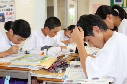 1年生 社会科の授業風景です。 「資料から、中国が「世界の工場」と呼ばれていた理由を読み取ります。