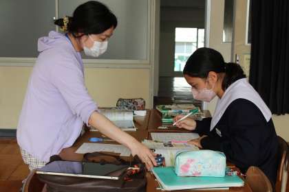 日本語教室の授業風景です。 間もなく行われる期末テストも意識して、熱心に学習に取り組んでいます。
