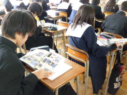 右…2年4組 理科:「分子と原子」の学習で、資料集でその構造について調べているところです。理科では、この辺りから物質の見方がマクロからミクロへと変わっていきます。