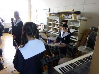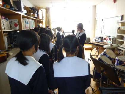 今朝は、小雪がちらついていました。その冷えた空気の中、吹奏楽部の合奏の音が爽やかに響いていました。