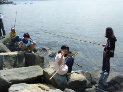 仕掛けから自分でセットします。 小魚ですが、ぼちぼち釣れます。