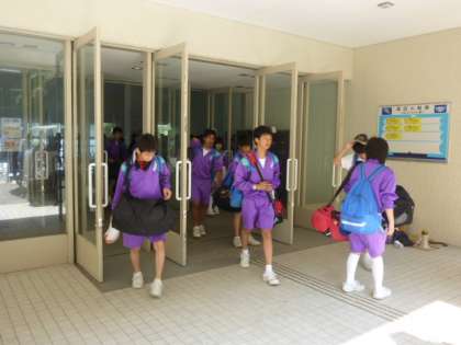 9:00より「終わりの式」を玄関前で行います。今、集合中です。