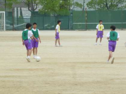 6月8日(火)3時間目の授業です。 男子はサッカー、女子はバレーボールに取り組んでいました。