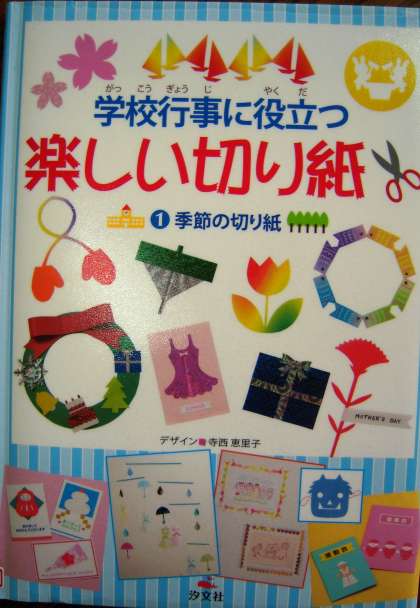 図書館にはさまざまな本があります。(左上)『学校行事に役立つ楽しい切り紙』寺西恵理子デザイン 汐文社 請求番号「754」