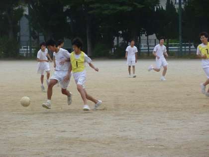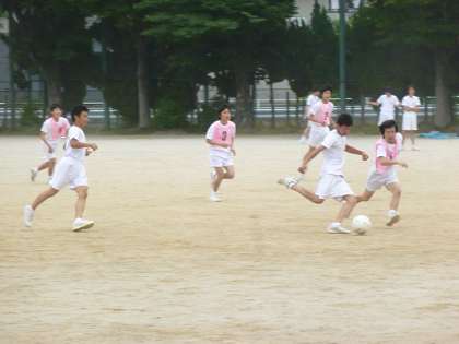 男子は、サッカーに取り組んでいます。日本1勝、気分は本田!