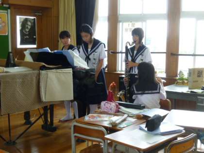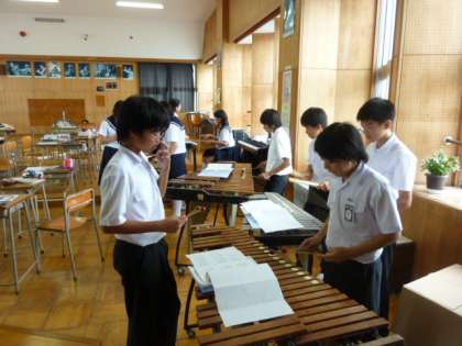 今日の授業「2年3組:音楽」 公開日 2010/06/29 更新日 2010/06/29 授業の様子 6月29日(火)2時間目の授業です。 「夏祭り」を班で楽器を選びアンサンブルします。木琴、和太鼓、サキソフォン、ピアノ……、楽器は色とりどりです。