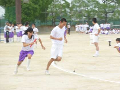 和気あいあいとした温かい雰囲気での「全員リレー」の様子です。