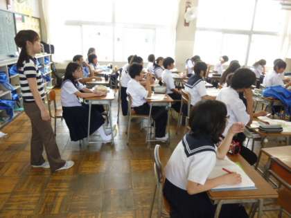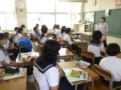 今日の授業「1年4組:英語」 公開日 2010/07/06 更新日 2010/07/06 授業の様子 7月6日(火)4時間目の授業です。 Do you play 〜? Yes,I do. No,I do not. の構文の学習です。大きい声で発声していました。