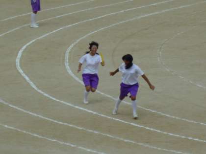 体育大会に向けて、各自が出場する種目の練習をしています。リレーのバトンパスや二人三脚などの練習をしていました。