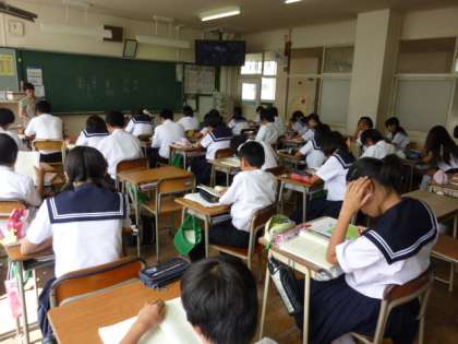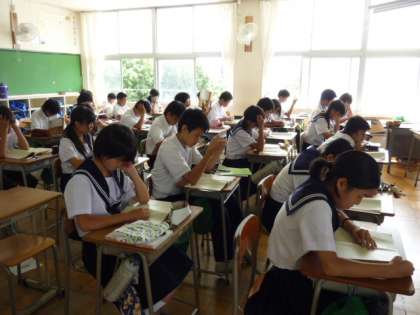 今日の授業「2年3組 国語」 公開日 2010/09/06 更新日 2010/09/06 授業の様子 9月6日(月)4時間目の授業です。 「ゼブラ」(ハイム・ポトク著 金原瑞人訳)の学習で、生徒は範読を聞いているところです。