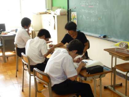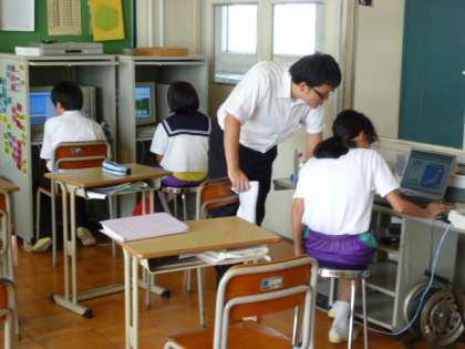 今日の授業「6・7組 数学」 公開日 2010/09/07 更新日 2010/09/07 授業の様子 9月7日(火)4時間目の授業です。 「文字の式」の学習を二つのグループに分けて、パソコンなども使用し、個々に応じた学習に取り組んでいます。