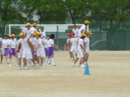 NEVER GIVE UP(3年学年競遊)の練習 公開日 2010/09/07 更新日 2010/09/07 3年生 本日6時間目に、3年生は体育大会の学年競遊「NEVER GIVE UP」の練習を行いました。 内容は、簡単に言うと騎馬戦です。