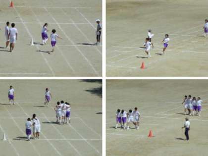 今日の授業「3年1・2組 体育」 公開日 2010/09/14 更新日 2010/09/14 授業の様子 9月14日(火)2時間目の授業です。 体育大会の出場種目の練習をしています。 100m×4リレーは計時をしていました。 n人(n+1)脚リレーは、二人三脚から一人ずつ増えていき、四人五脚でゴールします。