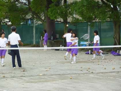 今朝は、中間テストが終わり、久し振りに運動場で朝練習(昨日は雨)を行っていました。