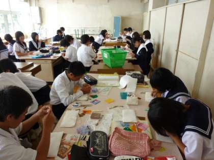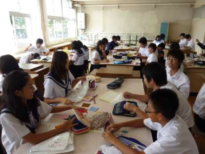 10月5日(火)3時間目の授業です。 布の絵本の製作進行中です。