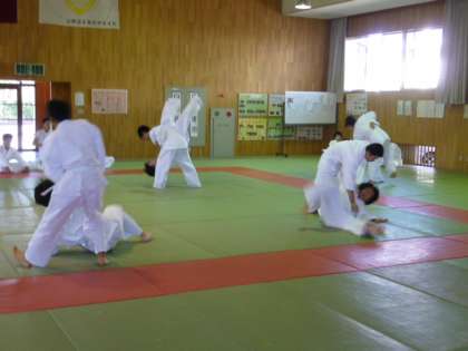 10月6日(水)4時間目の授業です。 男子は、柔道の授業で、投げ技の習得をしていました。