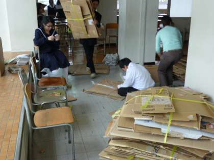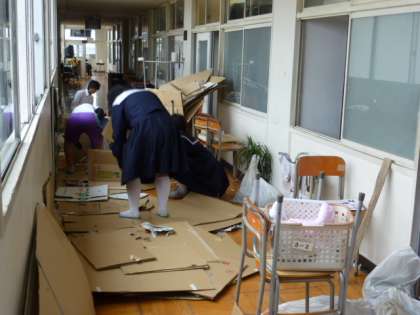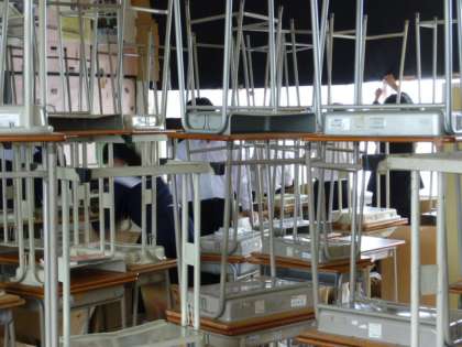 生徒たちは、昼食の後、後片付けをしています。これが結構大変なんです。