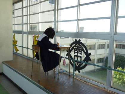 「想い出の場所」と題して、3年間で想い出が深い校内を写生しています。