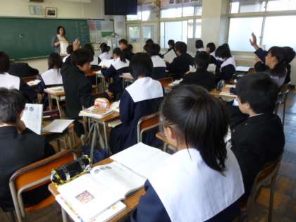 今日の授業「1年3組 国語」 公開日 2010/11/09 更新日 2010/11/09 授業の様子 11月9日(火)1時間目の授業です。 「未来をひらく微生物」(大島泰郎著)の学習です。ワークシートに基づいて、読み取りを進めようとしています。