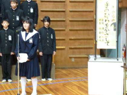 1年学年合唱「手のひらかざして」 指揮:磯部玲奈さん 伴奏:佐藤里咲さん