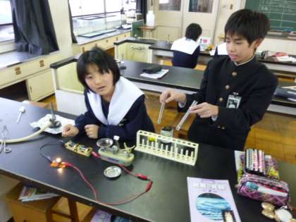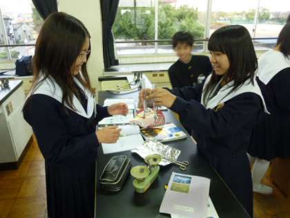 化学変化の授業で、マグネシウムの燃焼の実験をしています。燃焼前後の物質の変化について調べていました。