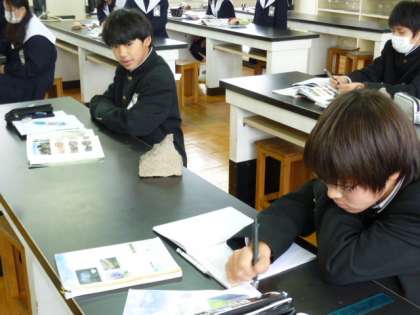 火成岩の学習をしていました。火山岩と深成岩を合わせて火成岩です。実物を用いて学習を進めていました。