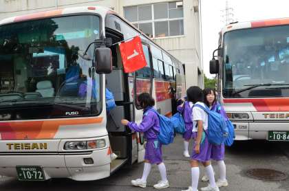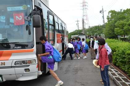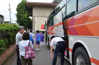 自然教室「出発」 公開日 2011/06/13 更新日 2011/06/13 行事の様子 8:00 予定どおり「国立若狭湾少年自然の家」に向けて出発しました。 残念ながら欠席者が3名いますが、参加者129名元気にバスに乗り込み、学校を出発しました。