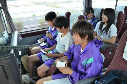 自然教室「バスレク始まっています」 公開日 2011/06/13 更新日 2011/06/13 行事の様子 8:40ごろ、養老SA付近です。名神高速道路を順調に進んでいます。 1号車(1組)の車内では、バスレク「いつ・どこで・だれが・どうした」で盛り上がっています。 「自然の家到着後、始めの式の直前」「トイレで」「中森先生が」「生き返った」よかったです。