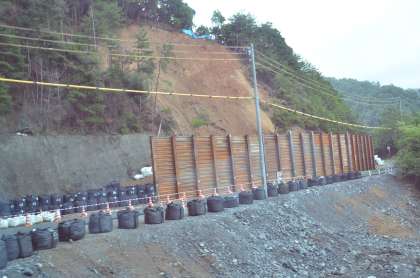 先月の大雨で崩落した場所は、片側通行でしたが、鉄でしっかりおおわれていました。