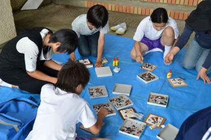 自然教室「若狭めのう」 公開日 2011/06/13 更新日 2011/06/13 行事の様子 1日目午後の活動は、磯での個人選択活動です。 13:30〜15:45 日差しがさしてきて、暑くもなく寒くもない気持ちよく活動しています。 「若狭めのう」で壁飾りを創っています。