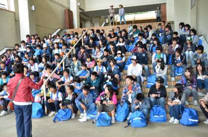 9:00大階段に集合。いよいよメインイベント。やや風と波がありますが、中止するほどではありません。予定どおり実施します。